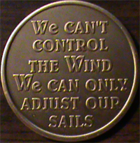On the back it says “We can’t control the wind, we can only adjust our sails“.